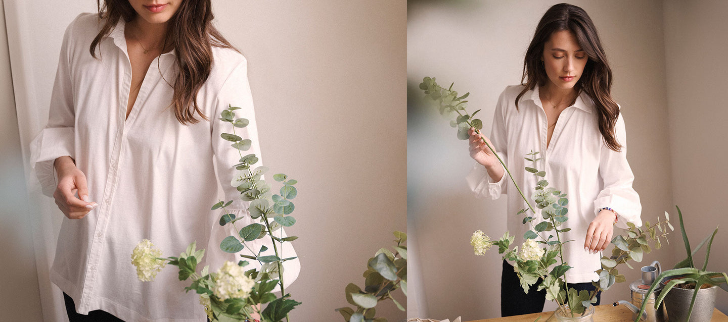 At NRBY we love natural fabrics. Breathable, comfortable and soft against the skin, our cotton is natural, washable, breathable and looks good too. Our cotton collection includes crisp cotton poplin shirts, the softest cotton and cashmere sweaters and chic print scarves - in classic white and clean shades to lift your mood.