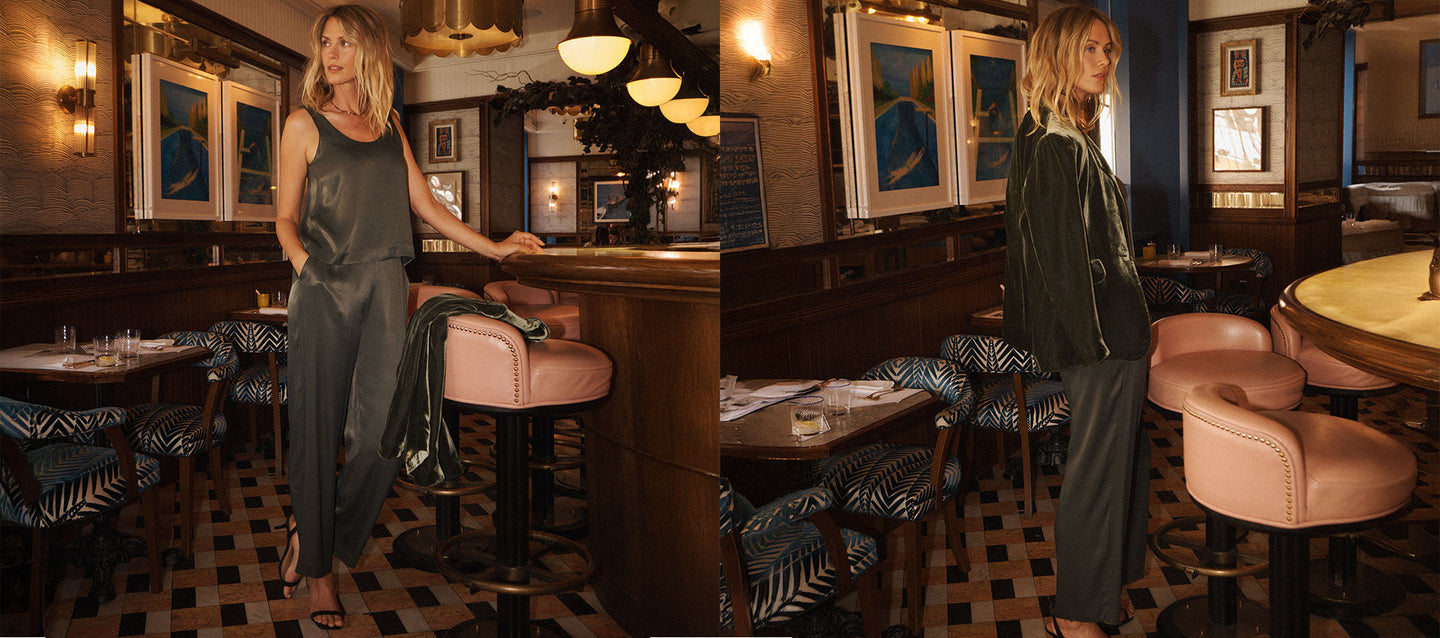 Thea silk blend velvet side stripe trouser - Forest / Khaki